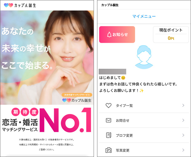 カップル誕生(次世代型マッチングサービス)の評判&口コミ 更新日:2026年4月30日 公開日:2024年2月8日 マッチングアプリ カップル誕生 概要と評判 https://coupletanjo.com/ [email protected] ※左ログイン前・右ログイン後 【1】株式会社サンテック 概要 ■サイト名:カップル誕生 ■運営会社:株 […] 続きを読む