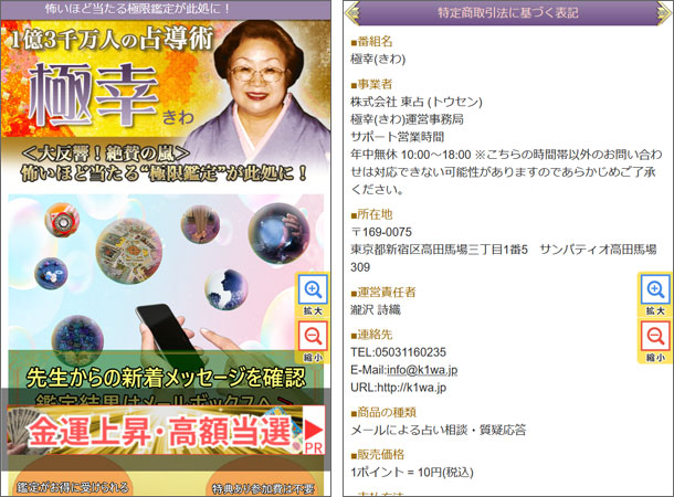 極幸/きわ(株式会社東占)[email protected] 更新日:2025年11月7日 公開日:2018年9月18日 占いサイト・診断系 極幸/きわ 概要 ※迷惑メール集客してる詐欺占いサイトです! https://k1wa.jp/ [email protected] 【1】株式会社東占 概要 ■サイト名:極幸(きわ)|TOPページ ■運営会社:株式会社東占(株式会 […] 続きを読む