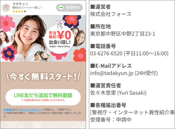 タダキュン(株式会社フォース)LINE登録しても出会いナシ!課金地獄へ一直線! 更新日:2025年10月28日 公開日:2025年10月18日 マッチングアプリ タダキュン/TADAKYUN 概要と評判 https://tadakyun.jp/ [email protected] 【1】株式会社フォース 概要 ■サイト名:タダキュン ■運営会社:株式会社フォース ■法人番号:登記な […] 続きを読む