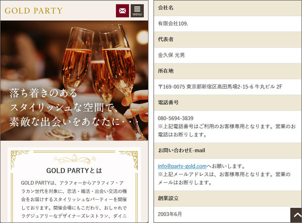 ゴールドパーティー(有限会社109・金久保光男)は社会人サークルBECKYに統合された模様 更新日:2025年10月8日 公開日:2022年3月9日 結婚・婚活サイト ゴールドパーティー/Gold Party 概要と評判 https://www.party-gold.com/ [email protected] ※2025年9月20日で閉鎖したようです ※以下の婚活サイトはまだ運営 […] 続きを読む