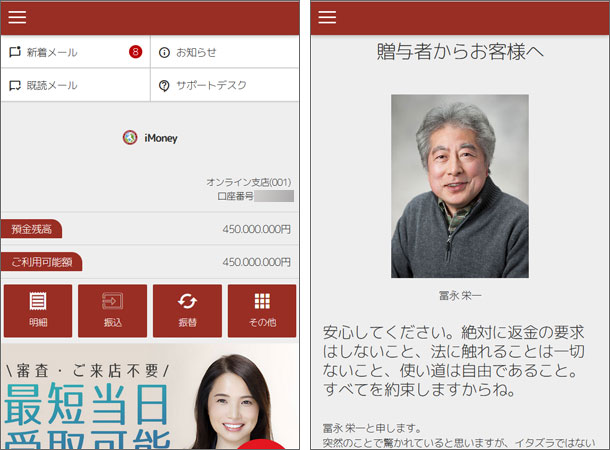 saif贈与金・iMoney・Mypays…架空オンライン支店と詐欺贈与者に注意! 更新日:2025年11月21日 公開日:2020年10月2日 架空の金融機関を語る詐欺 saif贈与金・iMoney・Mypays 概要 新 TIME(タイム) https://timetf.com/my-page https://timetf.com/m-pages/ [email protected] 旧 […] 続きを読む