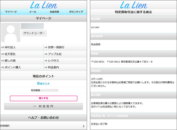 全てが本物にこだわり、皆様に安心と信頼をお届けします。La Lienはポイント制となっております。完全前払いですのであとから請求が来るということはございません。複数の決済方法にも対応しております。お支払い時にかかる手数料はお客様ご負担でお願いします。評判のいいLaLienサイトで素敵なマッチングをお楽しみくださいませ。
