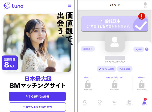 Luna【公式】日本最大級 SMマッチングサイト – X