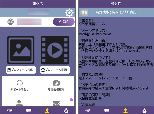 クレジットカードが使えるということは、少なくとも法人格です。しかし、どこにも会社名が書いてありません。フザけてるというか、もはやギャグ…大ボケもいいところです。こんな違法だらけの特商法のサイトに個人情報と金を差し出すなんて、ドMにも程があります。「騙される側にも隙がある」などというつもりはありませんが、課金前にせめて特商法ページくらいはチラッと確認してほしいものです。たったそれだけのことで、この「婚外活」のような仕様なら被害が防げるのですから。