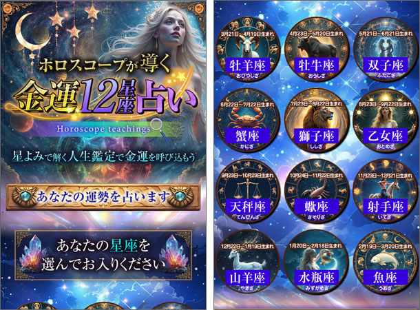 ホロスコープが導く金運12星座占い(集客用のサイト)