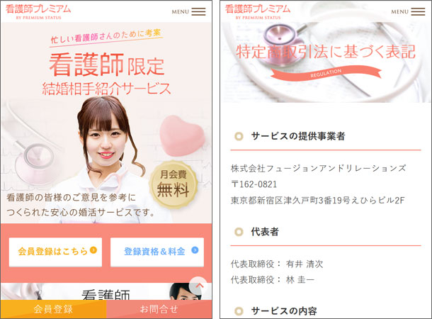 「自衛隊員専用」や「容姿端麗の男女限定」などニッチな婚活サイトばかりプロデュースしている「株式会社フュージョンアンドリレーションズ」の新作です。