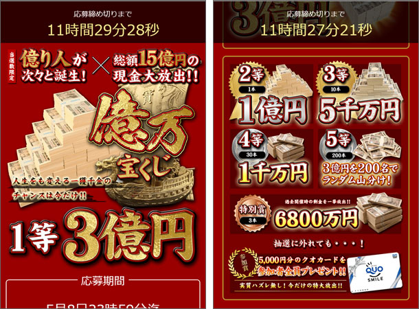 【本日50名限定】7.5億円+QUOカード2000円があなたに確定!!