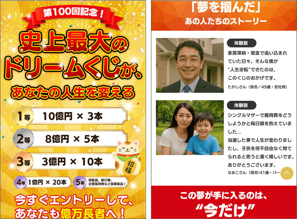 第100回記念!史上最大のドリームくじが、あなたの人生を変える(誘導用サイト)