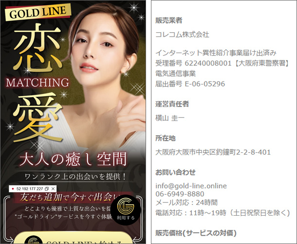 GOLD LINE(ゴールドライン)は悪徳出会い系アプリでした! 更新日:2025年11月6日 公開日:2023年7月26日 マッチングアプリ GOLD LINE/ゴールドライン 概要と評判 https://gold-line.online/ [email protected] 【1】コレコム株式会社 概要 ■サイト名:GOLD LINE ■新運営会社: […] 続きを読む