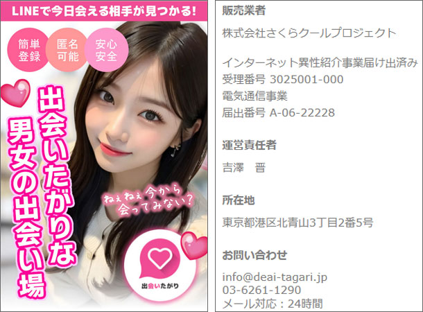 出会いたがり(LINEの出会いアプリ)評判&サクラ一覧! 更新日:2025年9月22日 公開日:2022年10月19日 マッチングアプリ 出会いたがり/であいたがり 概要と評判 ※LINE経由で登録させるサクラ出会い系です! 新 出会いたがり https://deai-tagari.jp/ [email protected] 旧 メグリアイ https […] 続きを読む