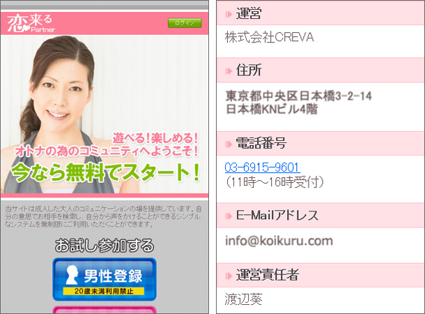 恋来るパートナー(株式会社CREVA・渡辺葵)会えるのかガチ検証 更新日:2025年10月3日 公開日:2015年5月1日 ポイント制サイト 恋来るパートナー/コイクルパートナー 概要 ※来るのはサクラだけです! https://koikuru.com/ [email protected] 【1】株式会社CREVA 概要 ■サイト名:恋来るパートナー ■運営会社 […] 続きを読む